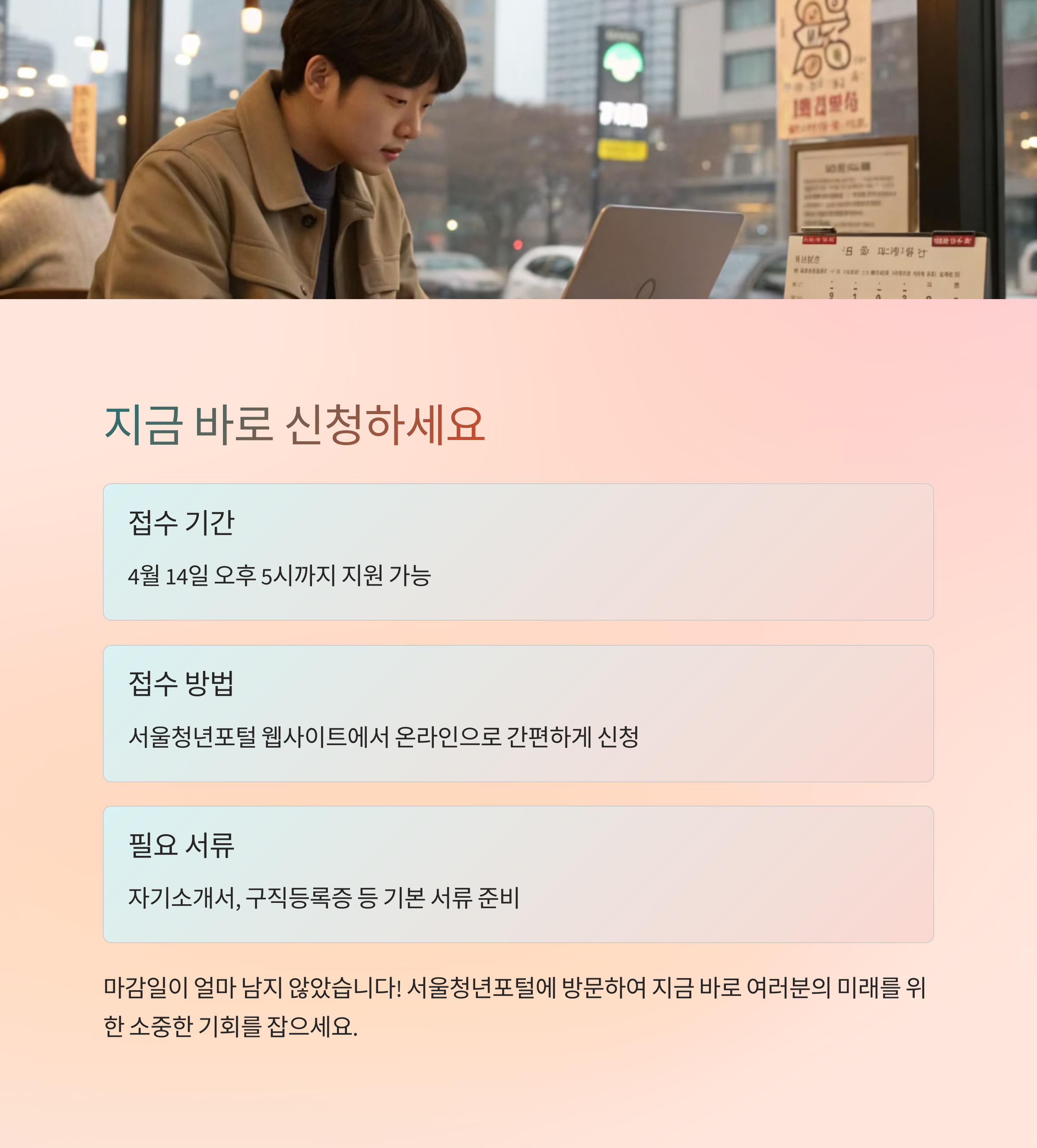 - 모집 기간: 2025년 4월 1일(화) ~ 4월 14일(월) 17:00
