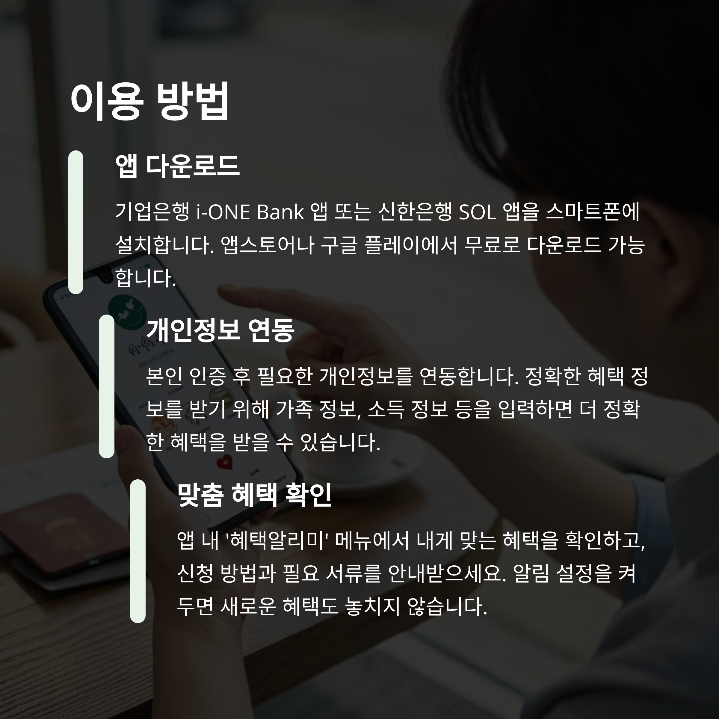 - 앱스토어/구글플레이에서 '기업은행' 또는 '신한은행' 앱 설치