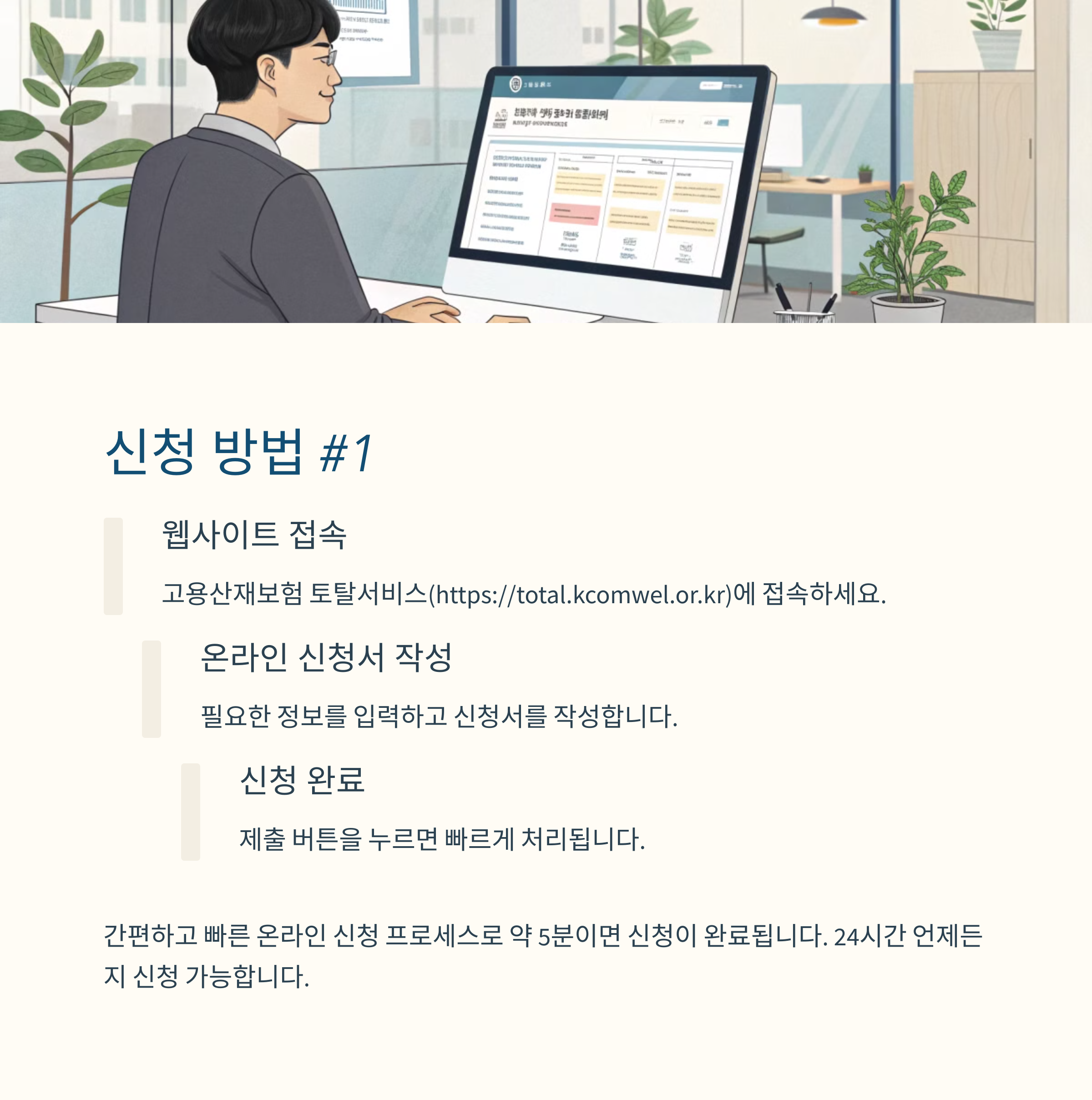 - 전화 문의: 근로복지공단 ☎ 1588-0075 / 국민연금공단 ☎ 1355