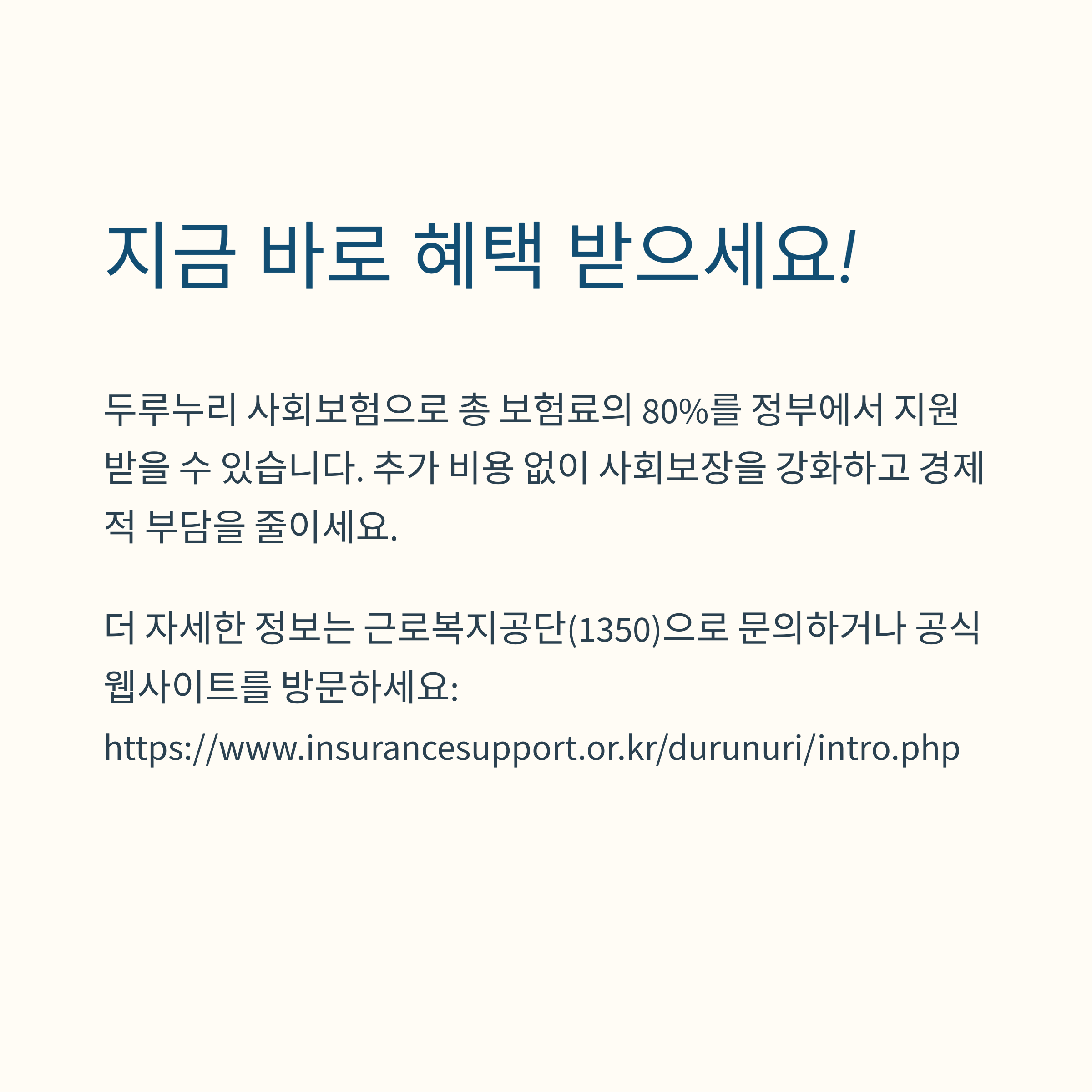 두루누리는 작지만 강력한 제도입니다. 복잡해 보여도 실제 신청 절차는 단순하며, 수십만 원의 보험료를 아낄 수 있는 기회입니다. 사업주라면 꼭 확인하고 신청하세요!