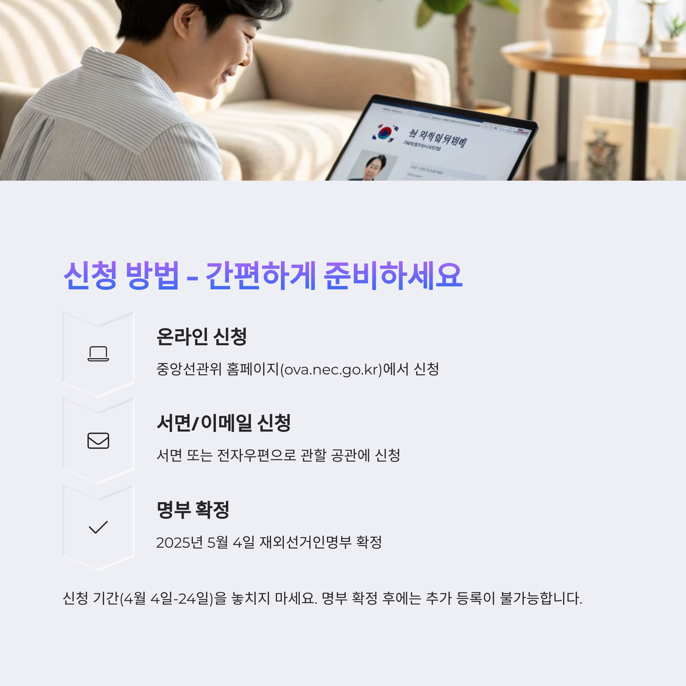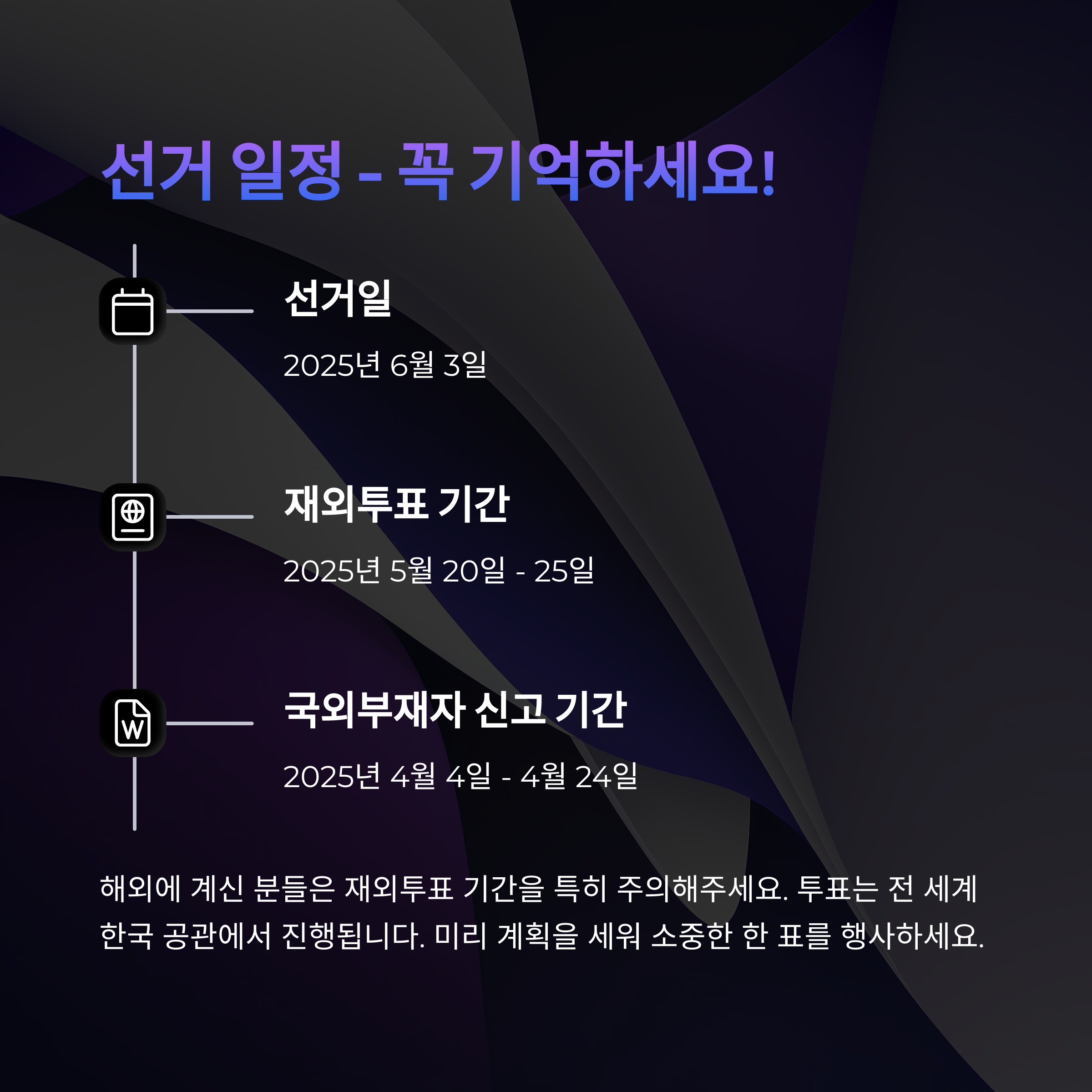 2025년 제21대 대통령선거, 재외투표를 위한 등록을 지금 바로 진행해보세요!