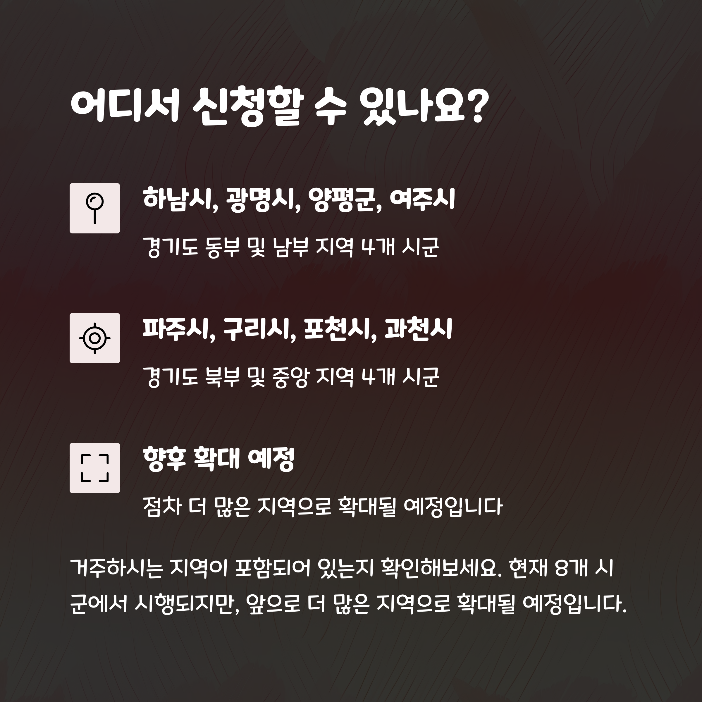 - 📍 참여 시군: 파주, 하남, 구리, 포천, 과천, 광명, 양평, 여주