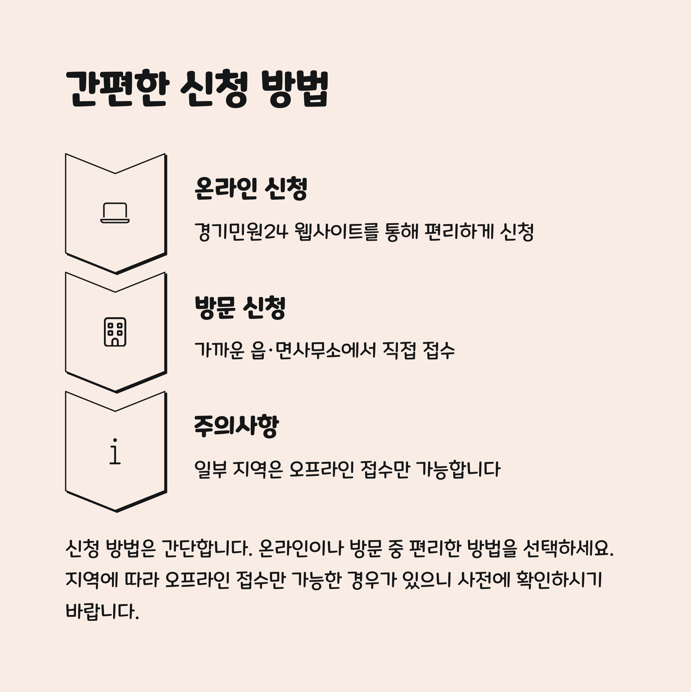 | 신청 방법 | 경기민원24 또는 읍면사무소 방문 |
