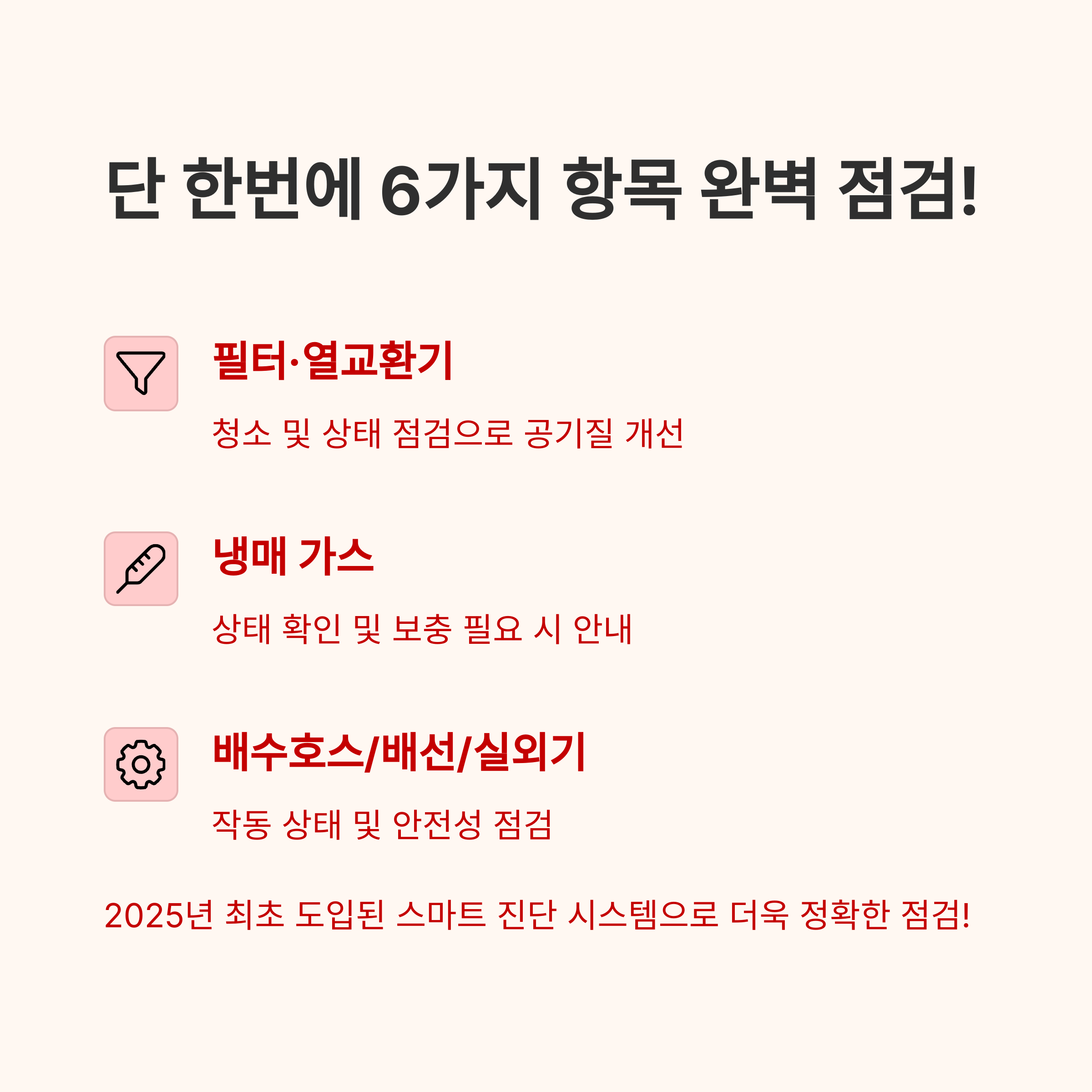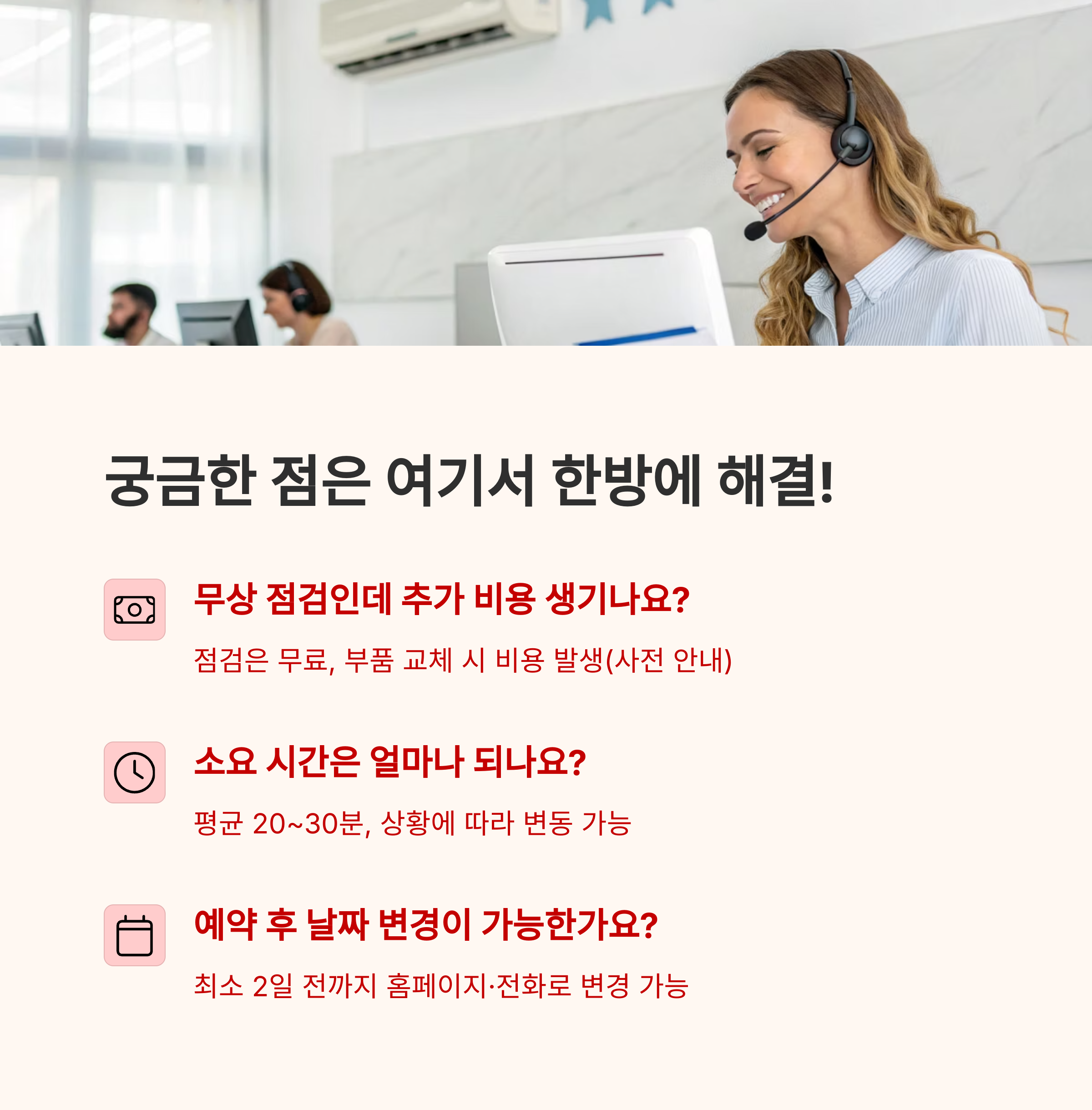 무상 점검 서비스 기간 내 신청 시 출장비는 무료입니다.
