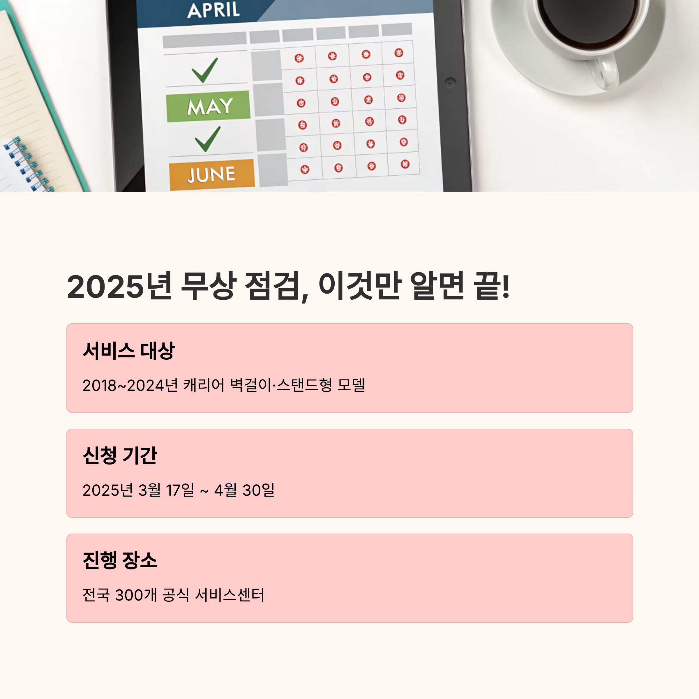여름을 대비해 에어컨 점검은 필수입니다. 특히 캐리어 에어컨을 사용하는 분들은 지금 바로 사전점검 무상 서비스를 신청하세요. 고장 예방은 물론 전기요금 절감에도 도움이 되는 이번 서비스는 2025년 봄 한정으로 진행됩니다. 아래에서 신청방법부터 점검 항목, 주의사항까지 자세히 안내드립니다.