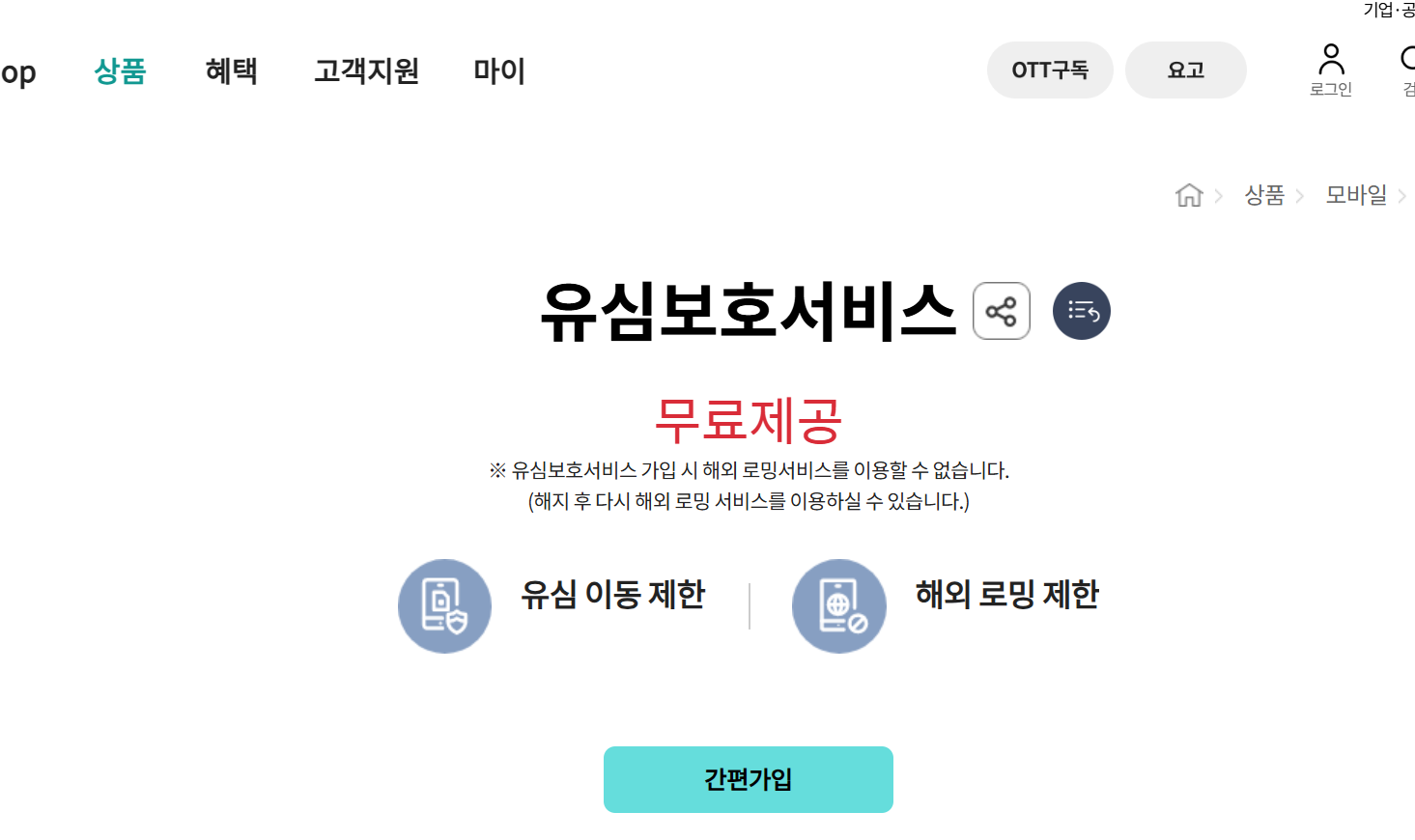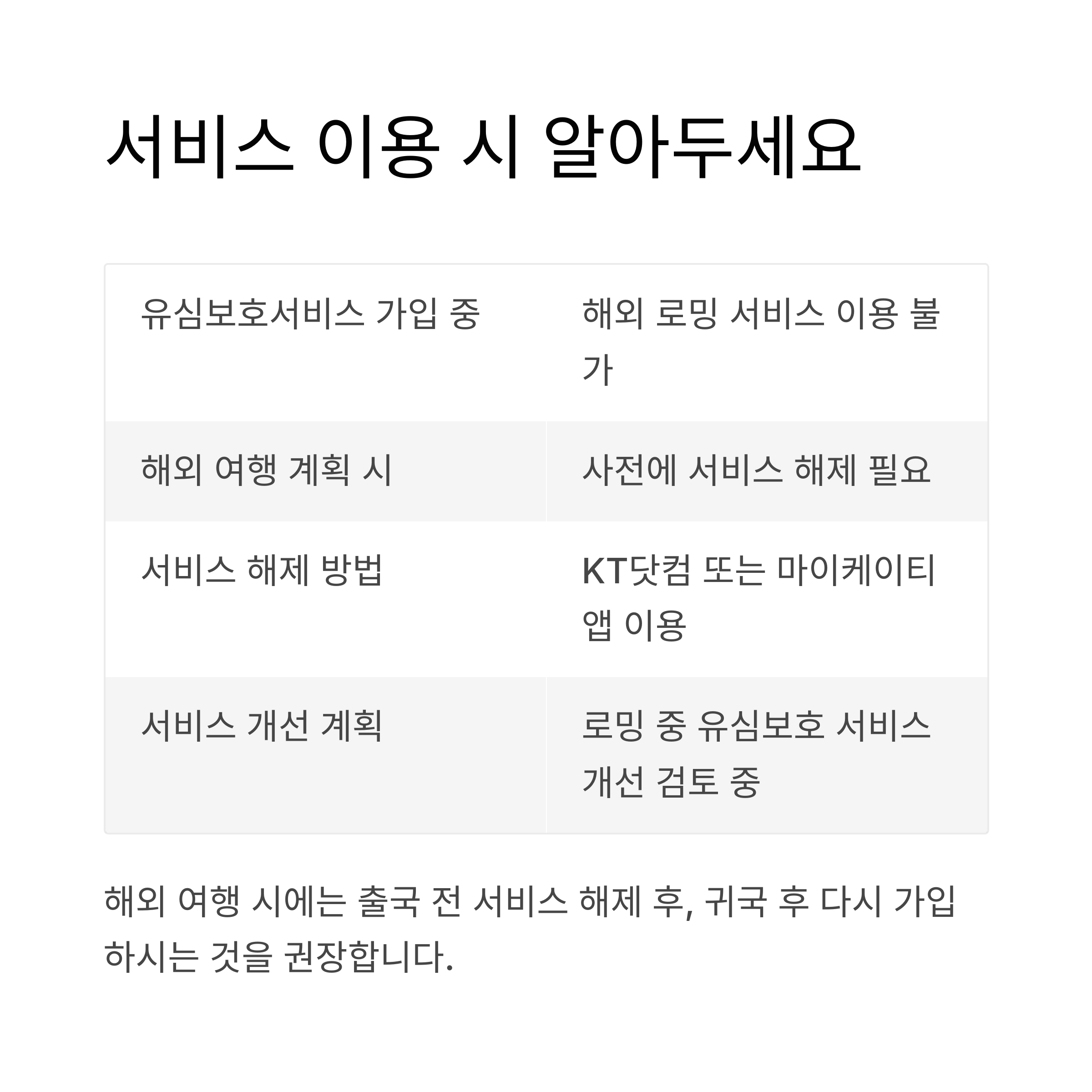 KT 유심 보호 서비스 가입하면 해외 로밍은 못 하나요?