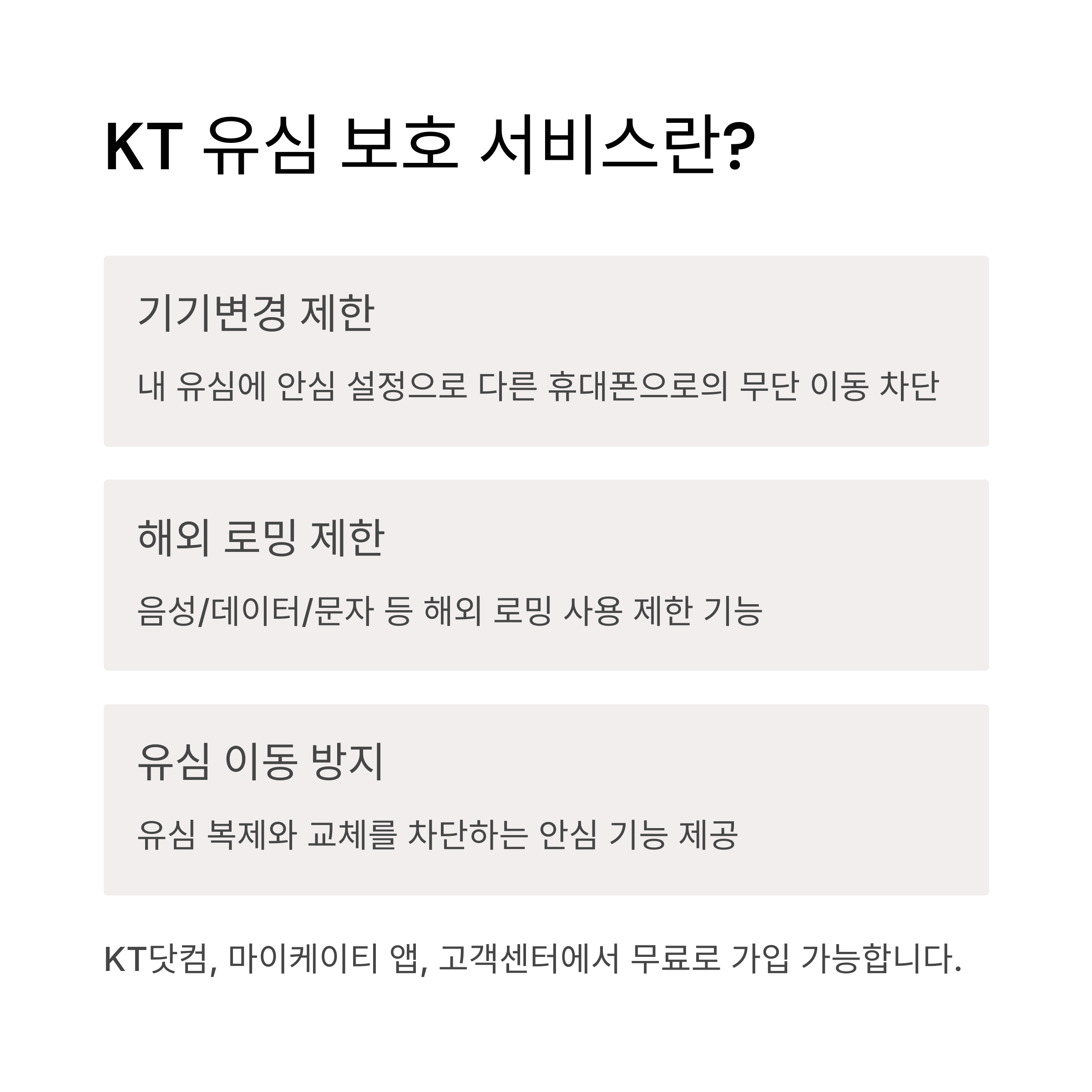 | 유심 보호 서비스 | 유심 복제 및 교체 방지 | KT 고객센터 앱 가입 |