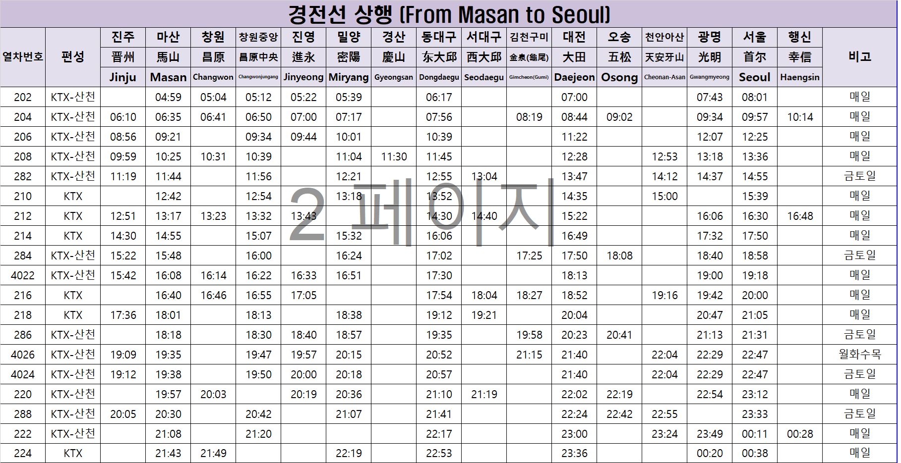 | 2025년 서울역 → 마산역 KTX 경전선 하행선 시간표 안내 🚄 (6월 변경 포함) (0) | 2025.05.05 |