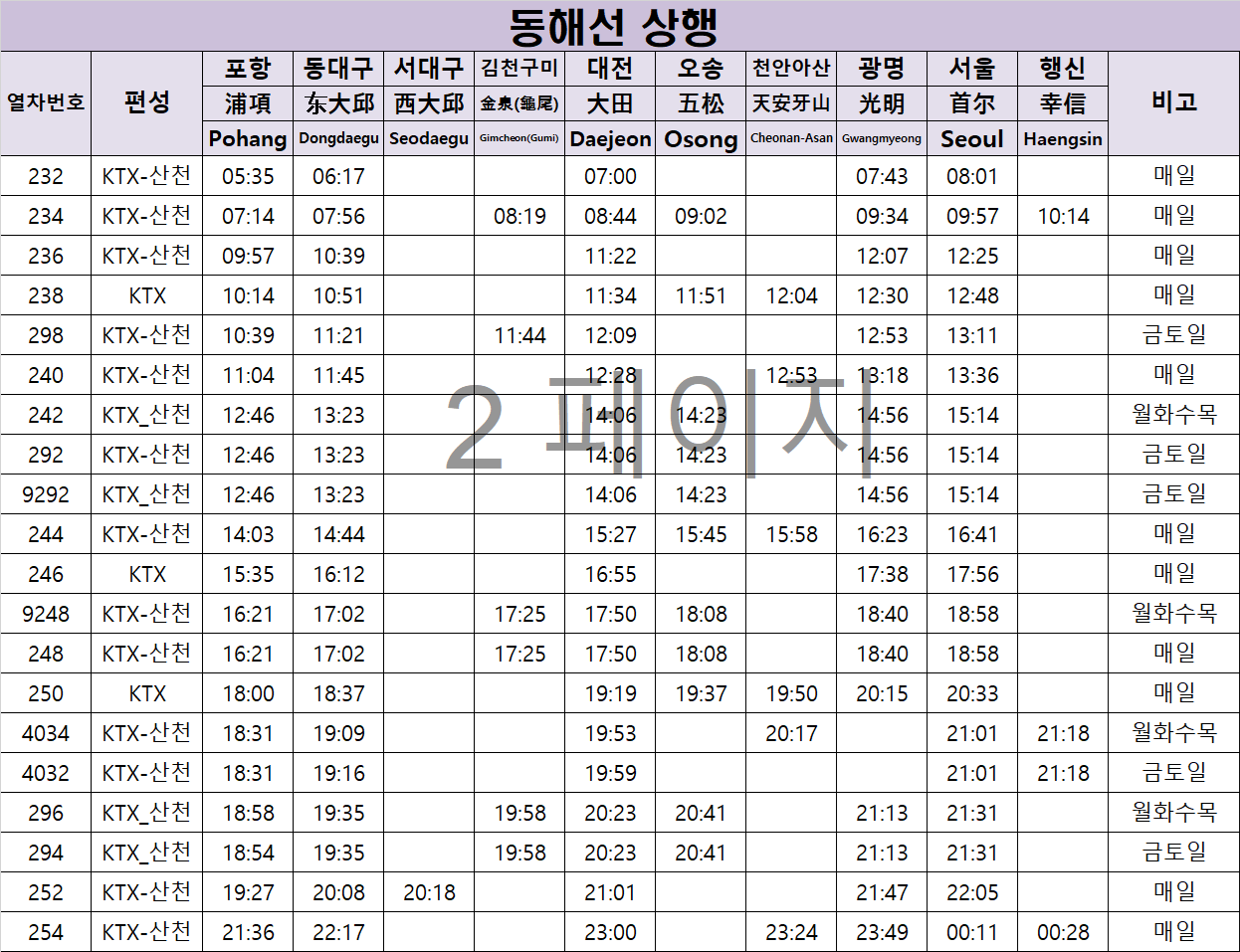 | 2025 서울역 → 포항역 동해선 KTX 기차시간표🚄 열차시간표 확인 및 실시간 조회 (0) | 2025.05.06 |