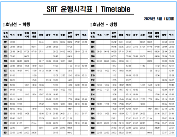 📌 수서 호남선 SRT 기본 정보
