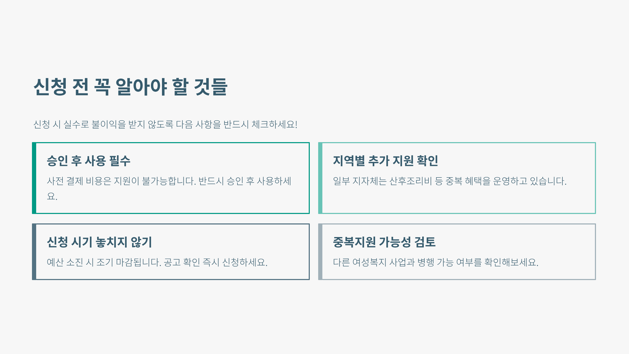 - 지역별 추가 지원 여부 확인: 일부 지자체는 산후조리비 등 중복 혜택 운영