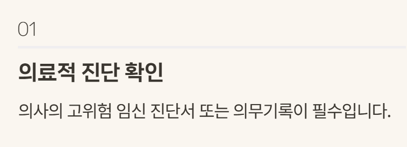 - 의사의 고위험 임신 진단서 또는 의무기록이 있어야 함
