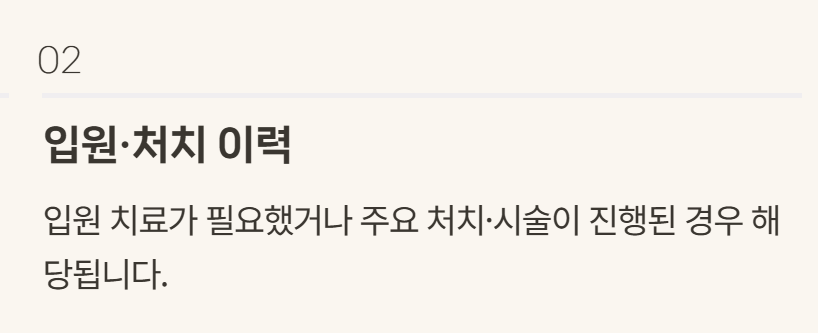 - 입원 치료가 필요했거나 주요 처치·시술이 진행된 경우